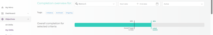 This leads us to the next view were you can see the Overall completion of the all of the OKRs for which you are either Owner, Contributor or Assignee (of the Key Results)