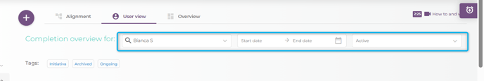 If needed , at the top of the page, you can use filters to personalize the displayed data in order ot see the completion overview for certain: