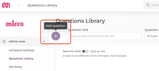 To support different types of manager- employee conversations, all check-in forms in Mirro are built from a shared Question Library. Start by defining your questions in the Admin Area module- Questions Library section.
